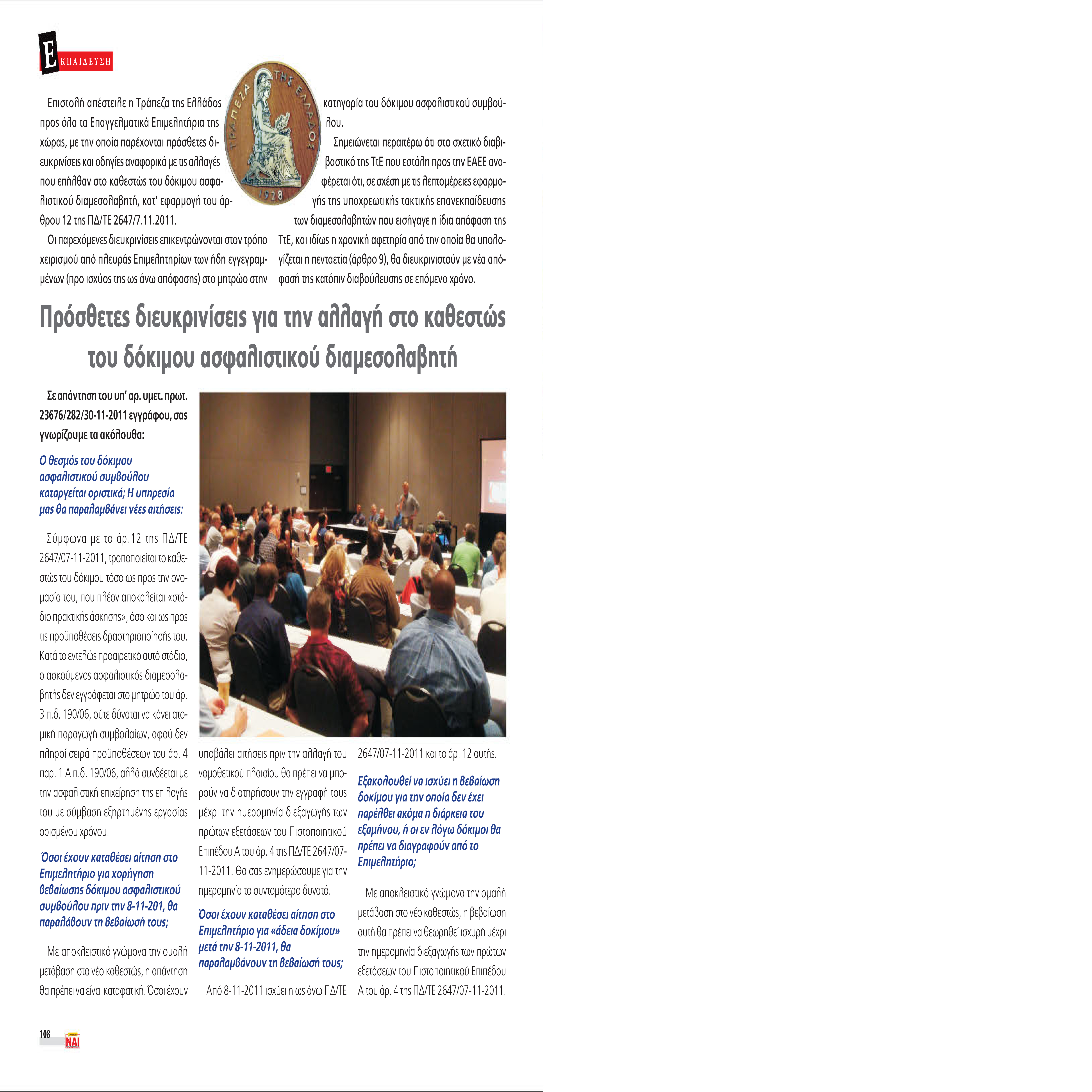 Διαβάστε το άρθρο όπως δημοσιεύθηκε στο Ασφαλιστικό ΝΑΙ, τεύχος 134, Νοέμβριος - Δεκέμβριος 2011