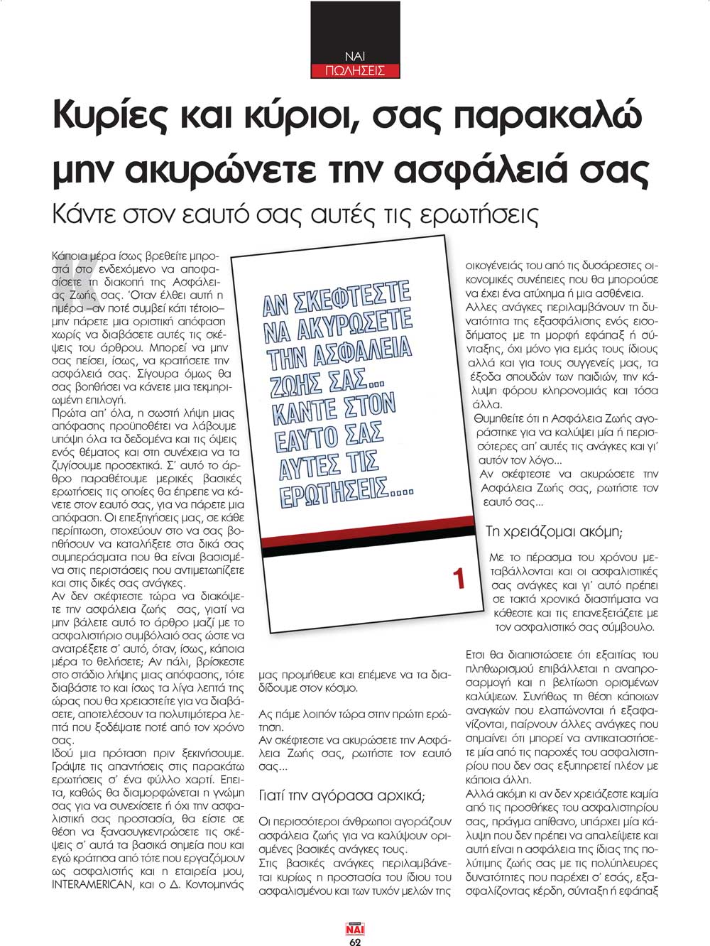 Διαβάστε το άρθρο όπως δημοσιεύθηκε στο Ασφαλιστικό ΝΑΙ, τεύχος 139, Σεπτέμβριος - Οκτώβριος 2012