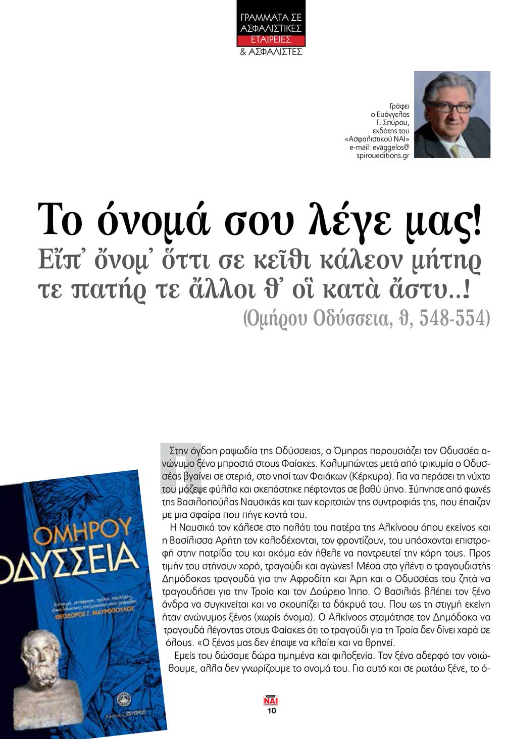 “ Εἴπ᾿ ὄνομα ” αγαπητέ αναγνώστη και ανώνυμε Έλληνα! Και κυρίως εσύ φίλε ασφαλιστή. Έτσι απλά!