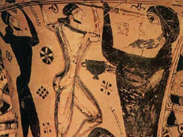 Στην όγδοη ραψωδία της Οδύσσειας, ο Όμηρος παρουσιάζει τον Οδυσσέα ανώνυμο ξένο μπροστά στους Φαίακες. Κολυμπώντας μετά από τρικυμία ο Οδυσσέας βγαίνει σε στεριά, στο νησί των Φαιάκων (Κέρκυρα). Για να περάσει τη νύχτα του μάζεψε φύλλα και σκεπάστηκε πέφτοντας σε βαθύ ύπνο. Ξύπνησε από φωνές της Βασιλοπούλας Ναυσικάς και των κοριτσιών της συντροφιάς της, που έπαιζαν με μια σφαίρα που πήγε κοντά του.
