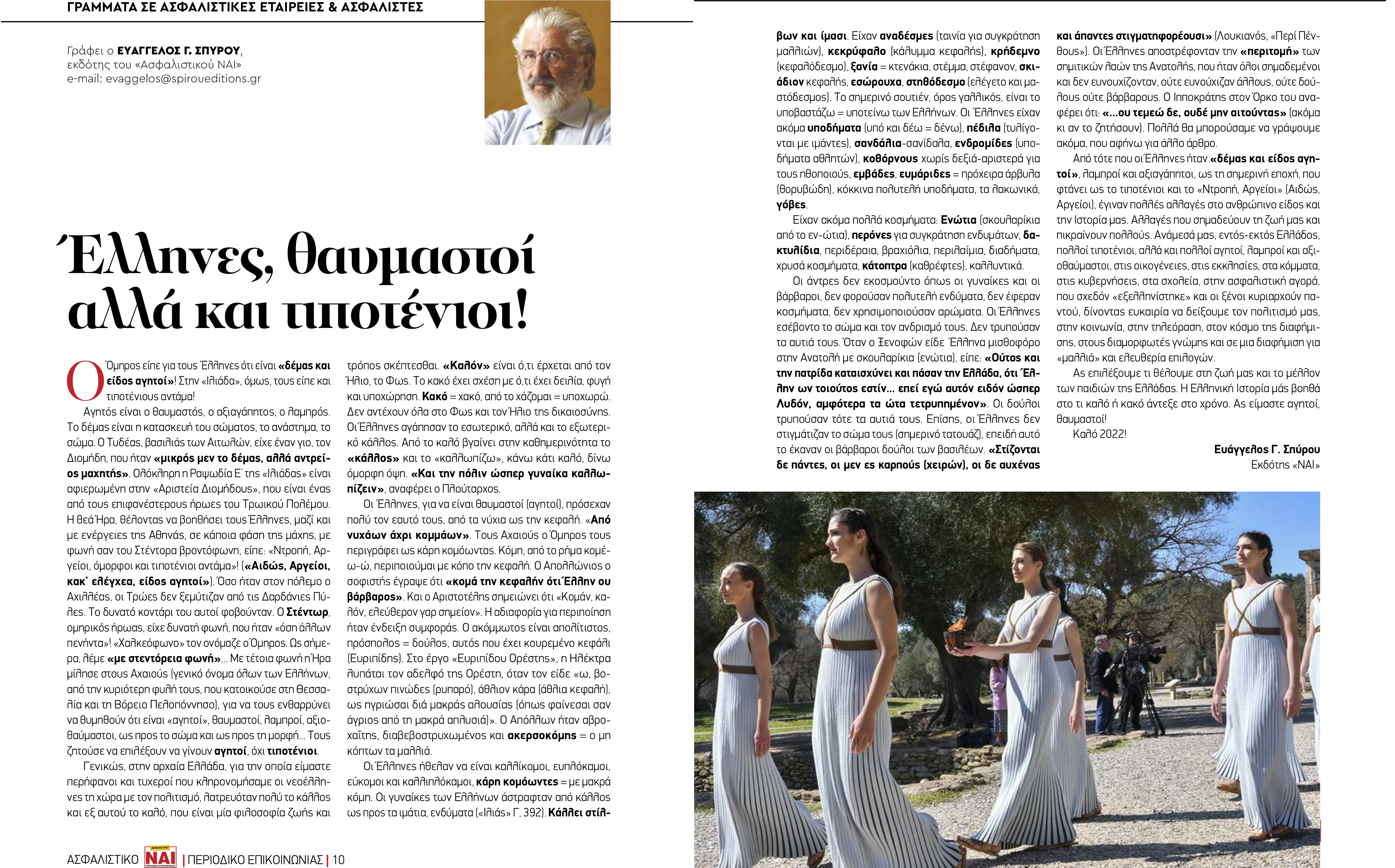 Γράφει ο Ευάγγελος Γ. Σπύρου, εκδότης του «Ασφαλιστικού ΝΑΙ»